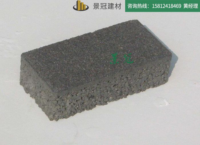 透水砖具有保持地面的透水性、保湿性,防滑、高强度、抗寒、耐风化、降噪、吸 音等特点。它采用矿渣废料、石粒、沙、水泥等为原料,经一次成型,是绿色环保产品。