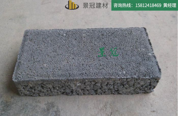 透水砖具有保持地面的透水性、保湿性,防滑、高强度、抗寒、耐风化、降噪、吸 音等特点。它采用矿渣废料、石粒、沙、水泥等为原料,经一次成型,是绿色环保产品。
